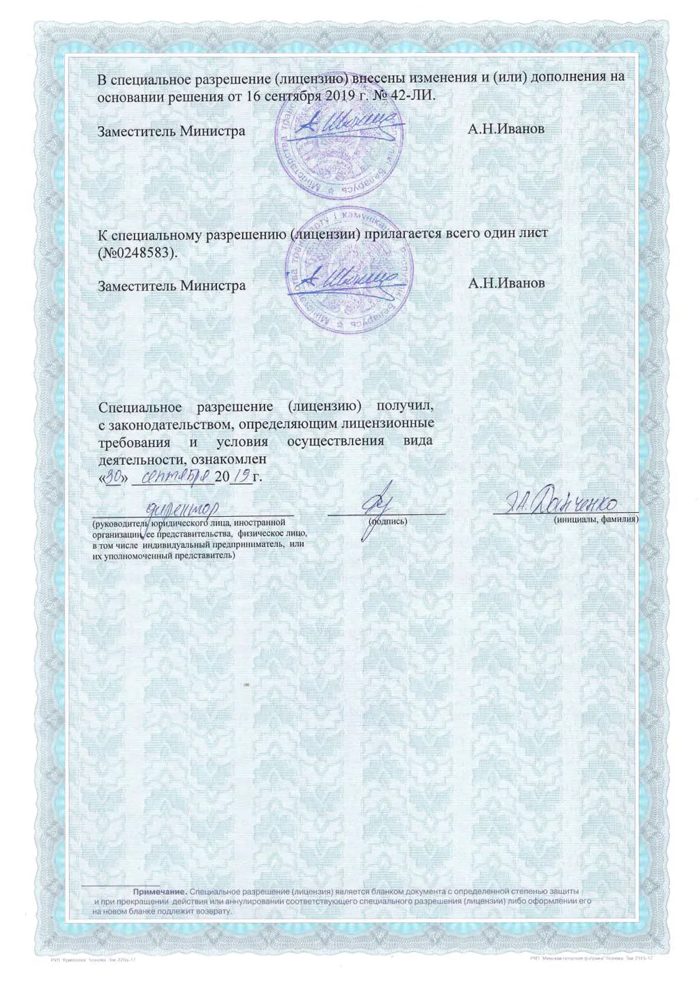 Специальные разрешения на вид деятельности
